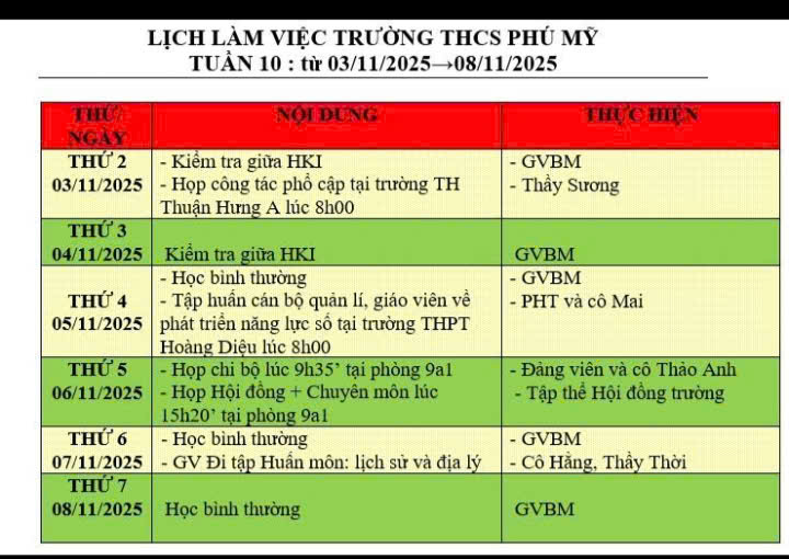 lịch làm việc từ 03/11/2025 đến 08/11/2025