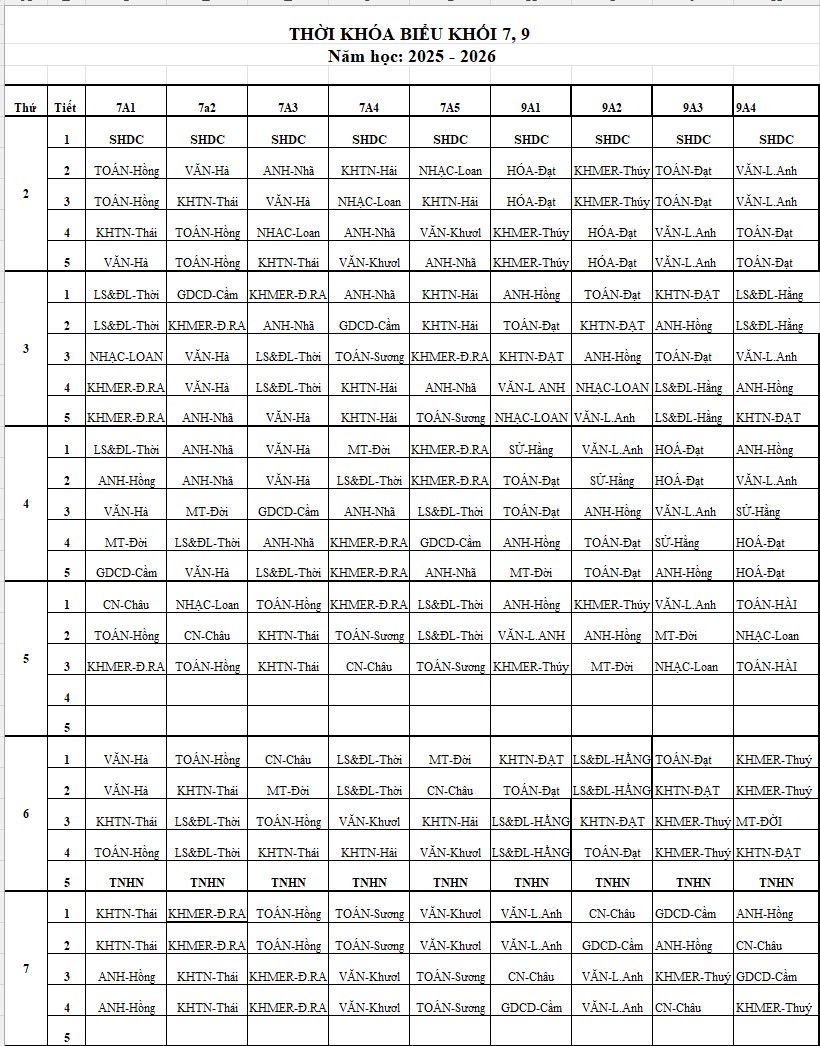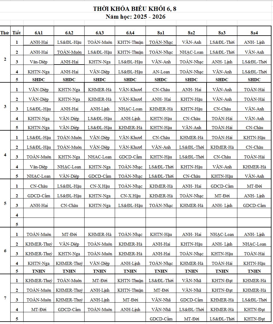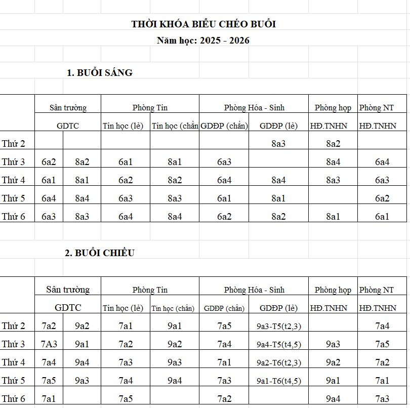 THỜI KHÓA BIỂU NĂM HỌC 2025 -2026